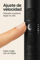 No corta de golpe: lima de forma gradual. Úsalo de 2 a 3 segundos por uña y haz pausas cortas. Así evitas calor y no te acercas a la zona sensible.